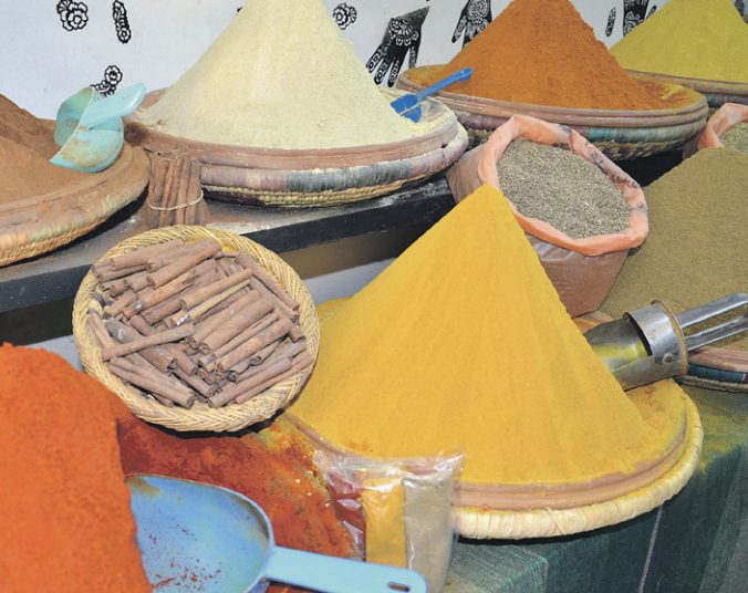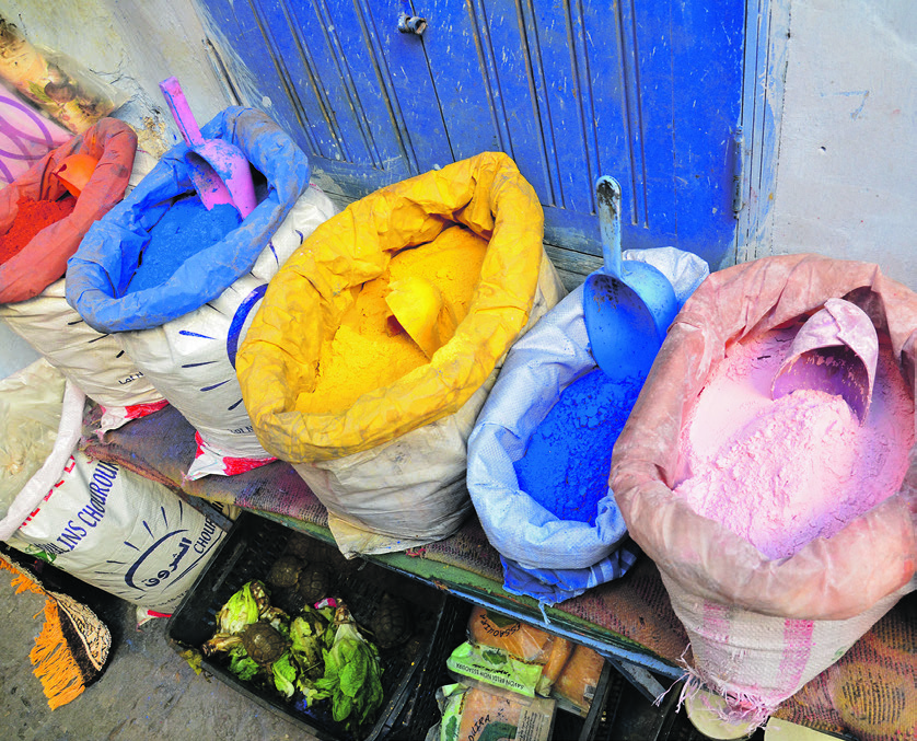 Vævede uld-berbertæpper i varme farver og geometriske mønstre pryder husmurene i de små handelsboder. Duften af nelliker, koriander og spidskommen kildrer i næsen. Overalt i byen bliver man mødt af en sand eksplosion af farver, dufte og eksotiske genstande, der kalder på at komme med hjem.