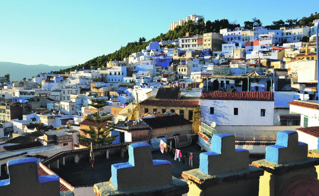 Et broget kulørt patchworktæppe af små finurlige huse balancerer op ad bjergsiden. Synet rammes ind af en varm gylden eftermiddagssol, der ømt kærtegner byen. Farverne står krystalklare, mens skyggerne bliver lange. Det smukke lys kan nydes i fulde drag fra Chefchaouens mange tagterrasser, hvorfra man har en overdådig udsigt over byen og de nærliggende bjerge.