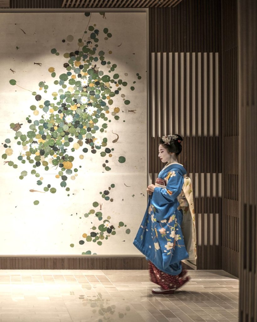 Maiko-opvisning i lobbyen. Foto: Four Seasons Hotel Kyoto
