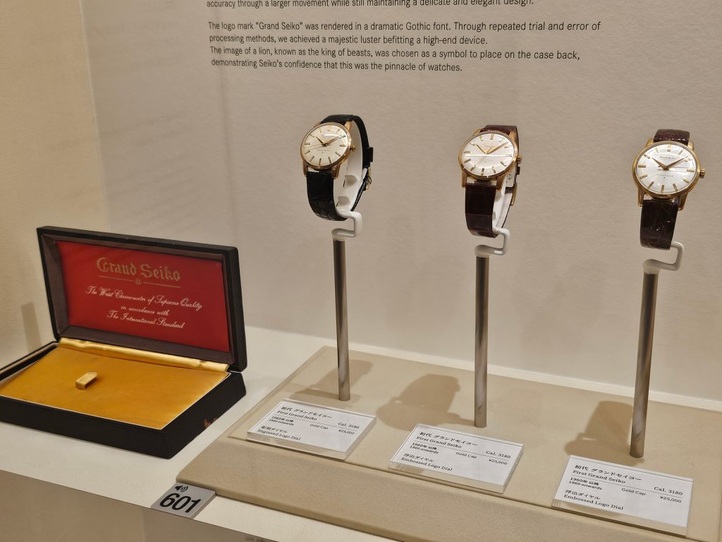 Etagen føles med sin dæmpede belysning, minimalistiske indretning og sildebensparket som et museum inde i museet og viser historiske Grand Seikos, som dem der i slutningen af 1960erne helt dominerede de schweiziske kronometertest.