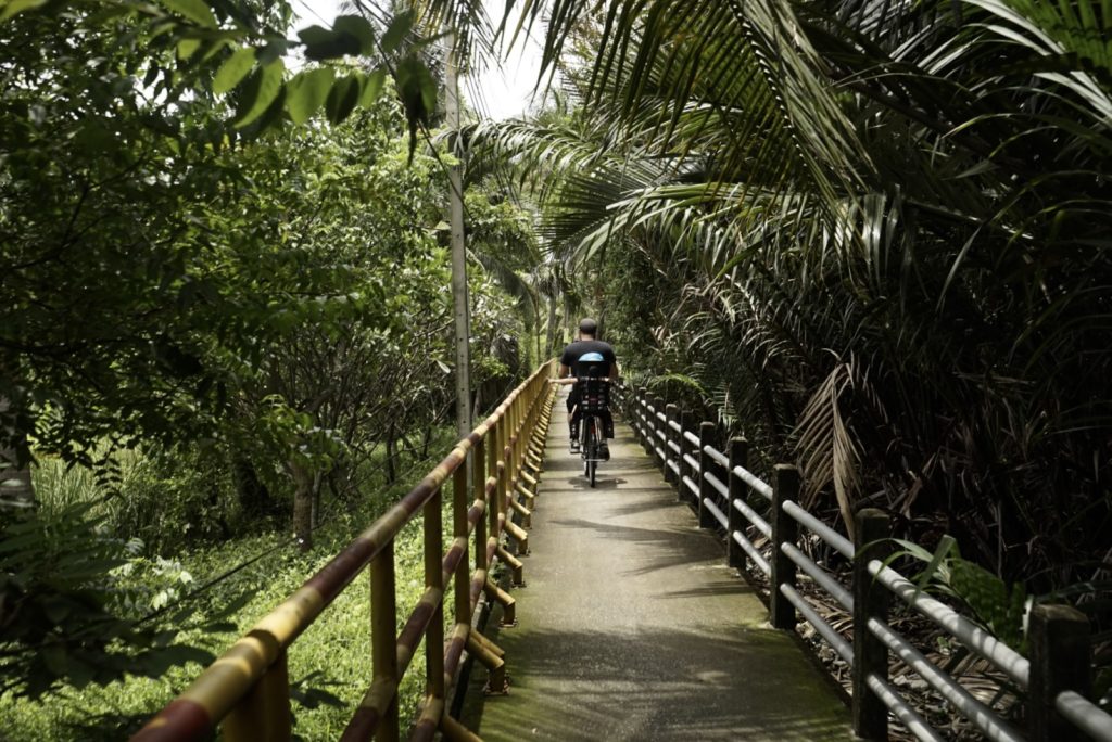 Bang Kachao bliver kaldt Bangkoks grønne lunger. Her kan du cykle rundt i et landskab, der er en skarp kontrast til hovedstadens højhuse. Foto: Berit Algren Bonde