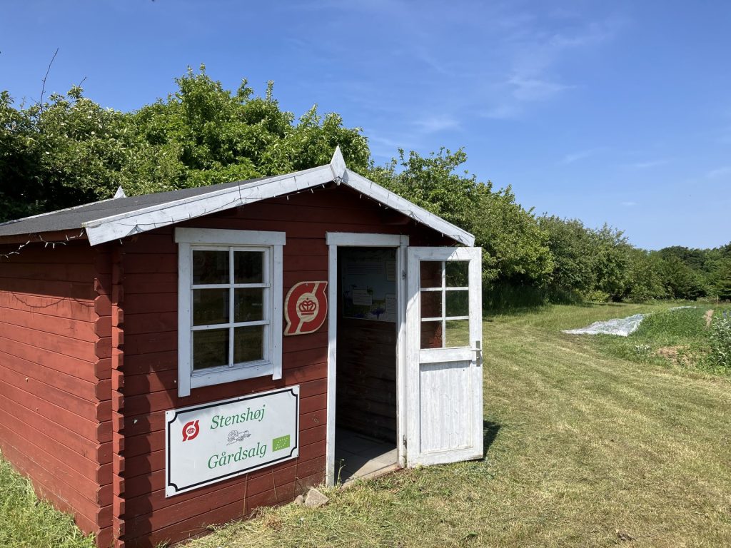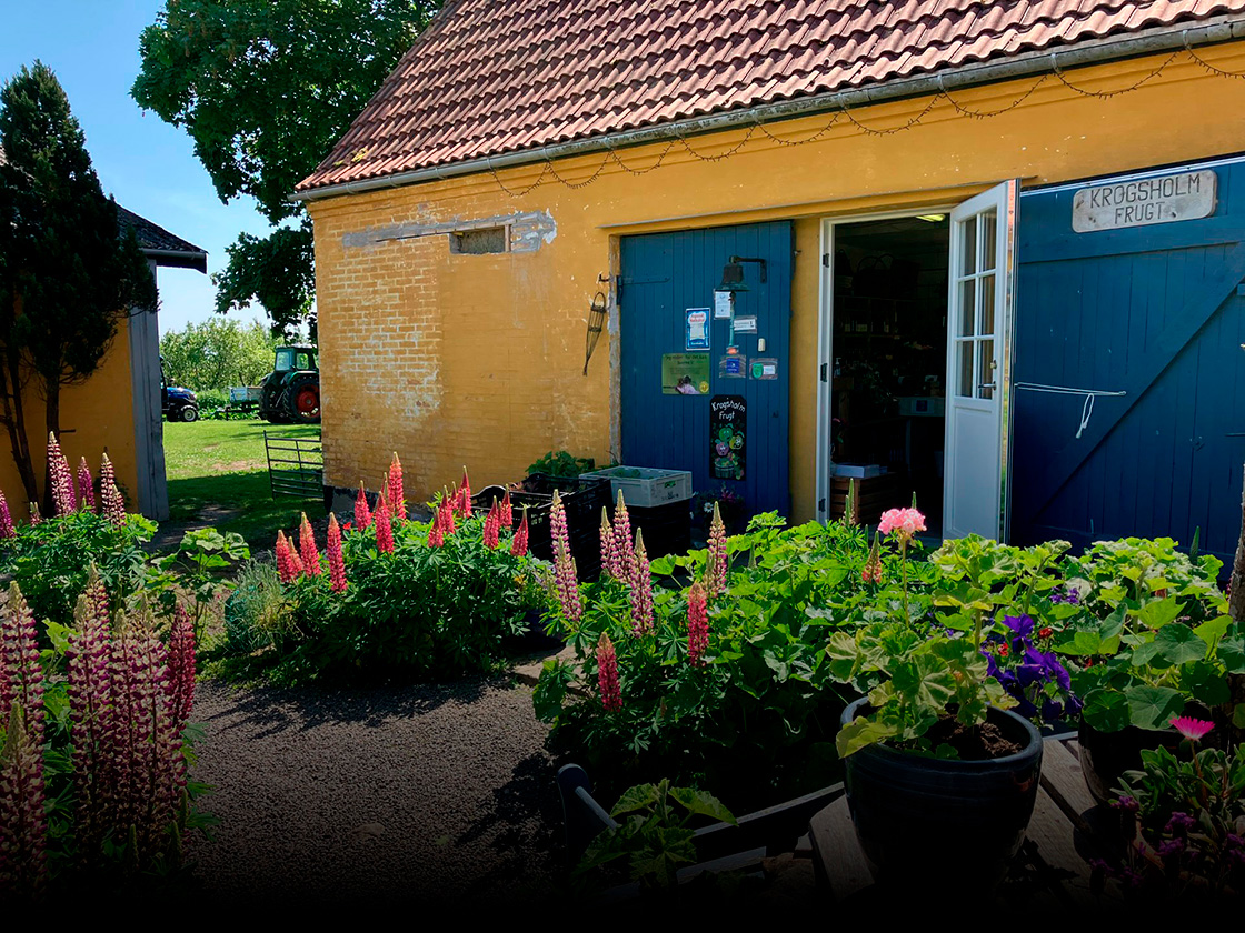 I ren fred og idyl – midt ude i ingenting – med udsigt til bølgende marker på den ene side og dyb skov på den anden ligger gårdbutikken Krogsholm. Her byder et lille skilt og hvidmalet vejskur velkommen med sæsonens frugt og grønt, der er lige til at handle, sammen med et regiment høns og muligvis også kattekillinger.