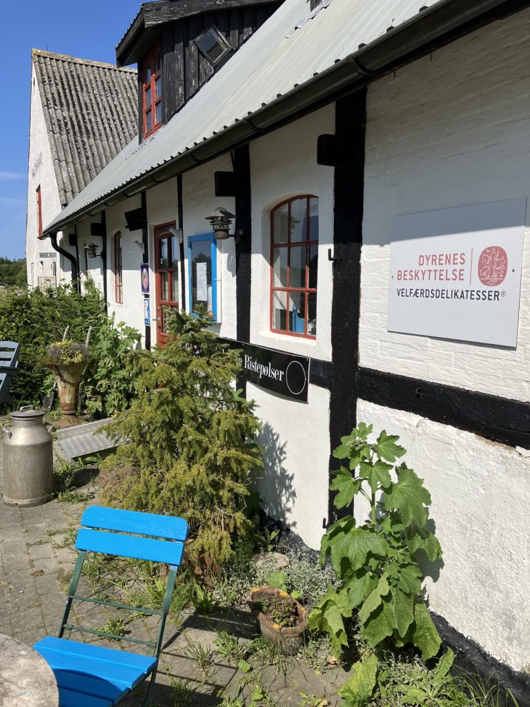 Inde i gården er en stalddør slået op til en gårdbutik, der næppe har sin lige andre steder. Her sælges lokal pasta fremstillet på bornholmsk durumhvede, der dyrkes på markerne nær gården.