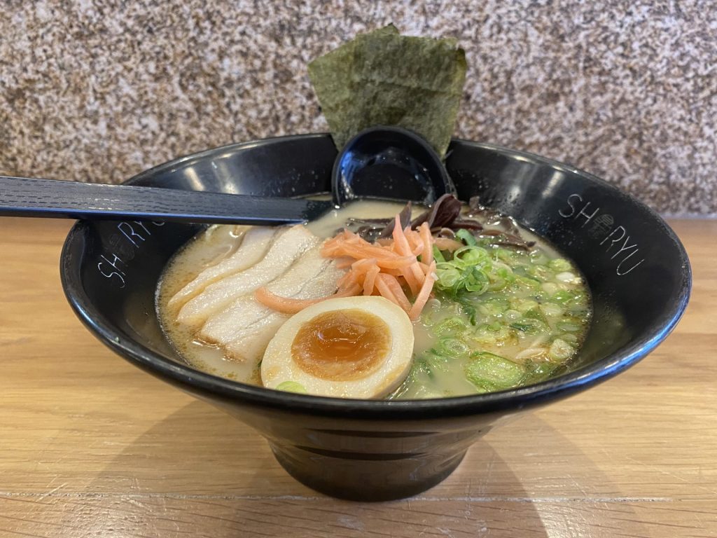 Den lille kæde Shoryu har en håndfuld ramen-restauranter spredt ud over London, og én af dem befinder sig belejligt for os midt på Kensington High Street. Her kan du selv vælge, hvordan dine nudler skal tilberedes, det vil sige, om de skal være ”al dente” eller helt bløde, og flere af bordene har direkte kig ind til de arbejdende kokke.