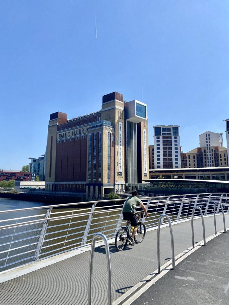 Den mest turistvenlige er Millennium-broen for cyklister og fodgængere, som vil opleve Baltic. Det er et af verdens største gallerier og byens center for samtidskunst med skiftende udstillinger i en renoveret melfabrik, som med sin funktionalistiske silokonstruktion er sin egen fryd for øjet – og en værdig lillebror til Tate Modern og Londons Millennium Bridge.