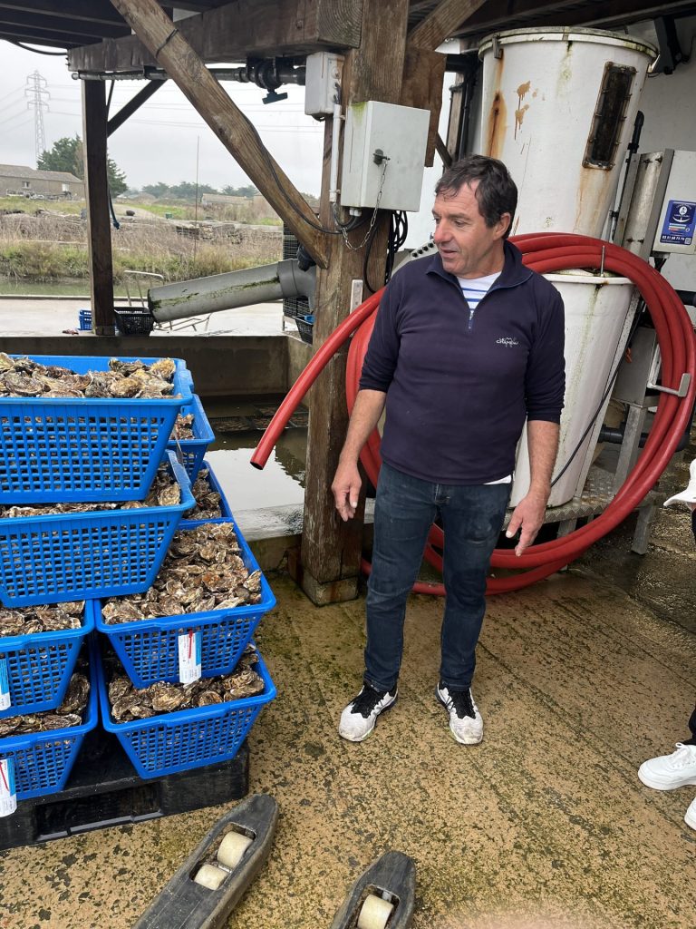 Alains bedste østers hedder Fine de Claire, og de har tilbragt deres sidste tid i bassiner, hvor det salte havvand bliver blandet op med mineralrigt ferskvand. Herfra får hans østers ekstra smag. De første to-tre år af deres liv har de tilbragt i havet i nogle store metalnet.
