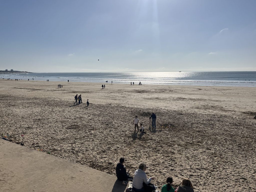 Vi bliver bestemt også draget mod havet og den gigantiske sandstrand, som delvist forsvinder, når tidevandet kommer. Kysten hedder Côte de Lumière, lysets kyst, da her er meget sol og 140 kilometer med strande, som indbyder til solbadning og vandsport. Mange især franske turister nyder at holde ferie her.
