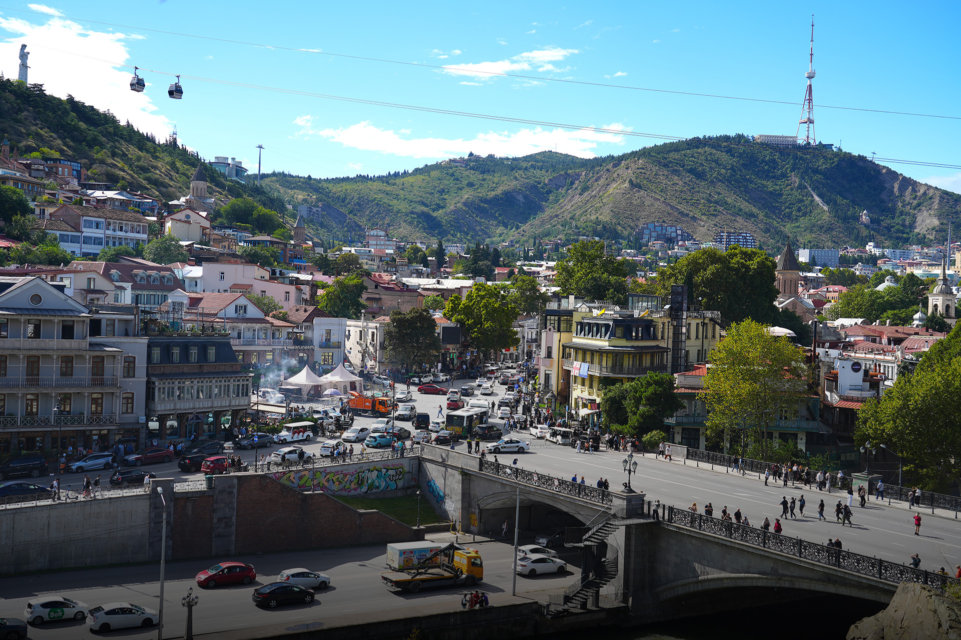 Endestationen er klippetoppen bag byen med fortet og Georgiens Moder – et kæmpemæssigt aluminiumsmonument af en kvinde i georgisk nationaldragt, der med værdig mine stoisk våger over byen.
