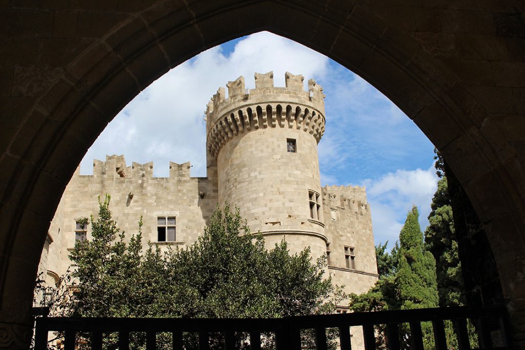Under fascisternes autoritære styre kom ledende arkitekter, arkæologer og byplanlæggere til Rhodos for at bygge nyt og renovere de historiske monumenter fra det gamle romerske imperium. Det er således også italienerne, der genrejste paladset med antikke søjler, statuer og mosaik fra Kos, og en enorm indvendig trappe af importeret marmor i forsøget på at lokke Italiens konge til Rhodos. Missionen mislykkedes, men som museum er paladset i stedet blevet en ubestridt succes.