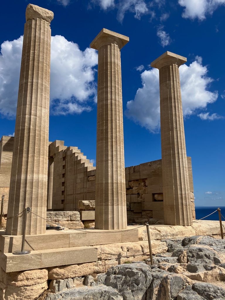 Kronjuvelen på den 116 meter høje klippe er det doriske tempel til gudinden Athena Lindos. Da den smalle, snirklede sti til toppen er proppet med besøgende, er det en god idé at købe billet i forvejen, så man slipper for at stå i kø.