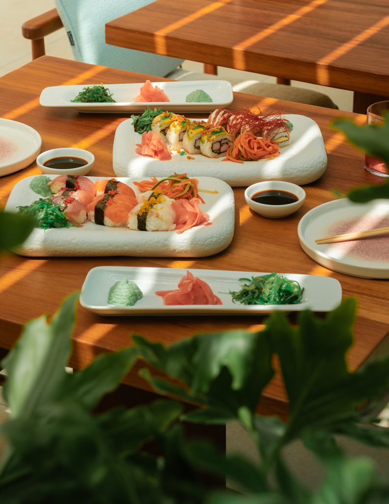 En ydmyg kornret fra Kreta er forvandlet til sprød en arancini, der tilberedes med en blanding af hvede og gedemælk og serveres med lokale grøntsager og røget ørredmousse. Selv i sushien er inspirationen lokal – havaborrer tilberedt i citrusfrugter fra Rhodos og tun i Kalamata-oliventapenade.