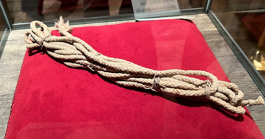 Det er selve det tov, som blev brugt til den første vellykkede bestigning af Matterhorn i juli 1865, hvor en gruppe, anført af den britiske eventyrer Edward Whymper, endelig nåede toppen efter seks forudgående forsøg.