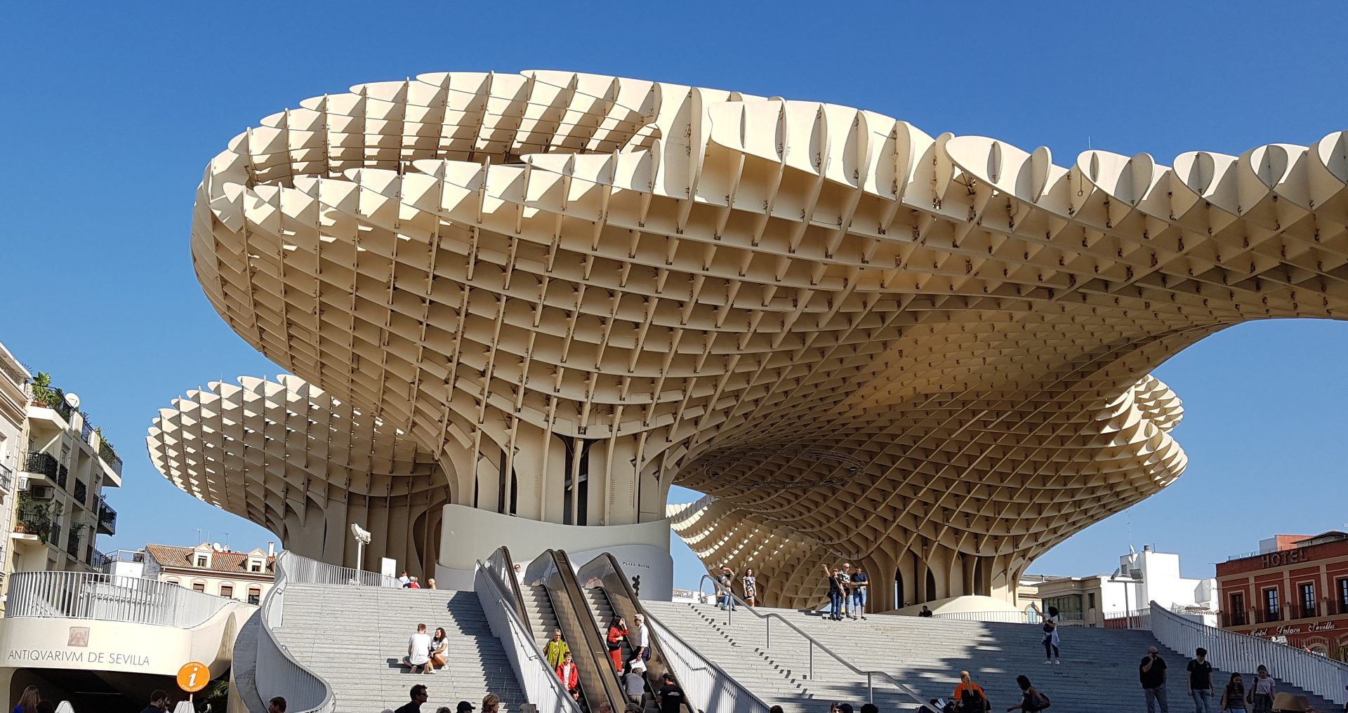 ”Svampene”, Setas, bliver de kaldt i folkemunde, men det formelle navn er Metropol Parasol. Det er verdens største træskulptur, og den ligner vitterligt seks forvoksede svampe. Arkitekten har ladet sig inspirere af hvælvingerne i byens katedral, men i stedet for mure og søjlegange, er de fem etager høje konstruktioner holdt sammen med svævende, bølgende gangbroer. I gadeplan er der arkæologisk museum med romerske ruiner og et islamisk hus fra 12. århundrede, man fandt under opførelsen. På næste niveauer er der madmarked og tapasbarer, og i det øverste luftlag ligger Balcon de Sevilla med en betagende udsigt over hele byen.