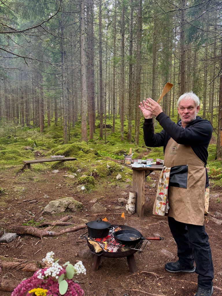 Det lykkes os at finde syv forskellige (blandt andet brungul rørhat og kantareller), og vi finder også vilde blåbær og skovsyre. Småland har et koncept ved navn »Det Spiselige Land«, fordi det at sanke sin egen mad længe har været en del af kulturen.
