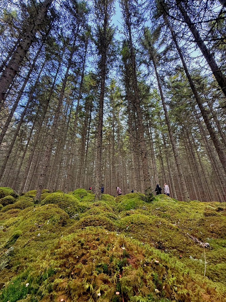Vores hvin, efter mødet med det kolde vand, skaber ekko på tværs af søen. Vi tysser på os selv, mens vi vænner os til temperaturforskellene mellem sø, spa og sauna. Det er den ultimative aktivitet lige før sengetid, for vi bliver helt møre og soveklare. Dagen efter mødes vi med svampeeksperten Stuart Hippach, som tager os med dybere ind i den elver-agtige skov.