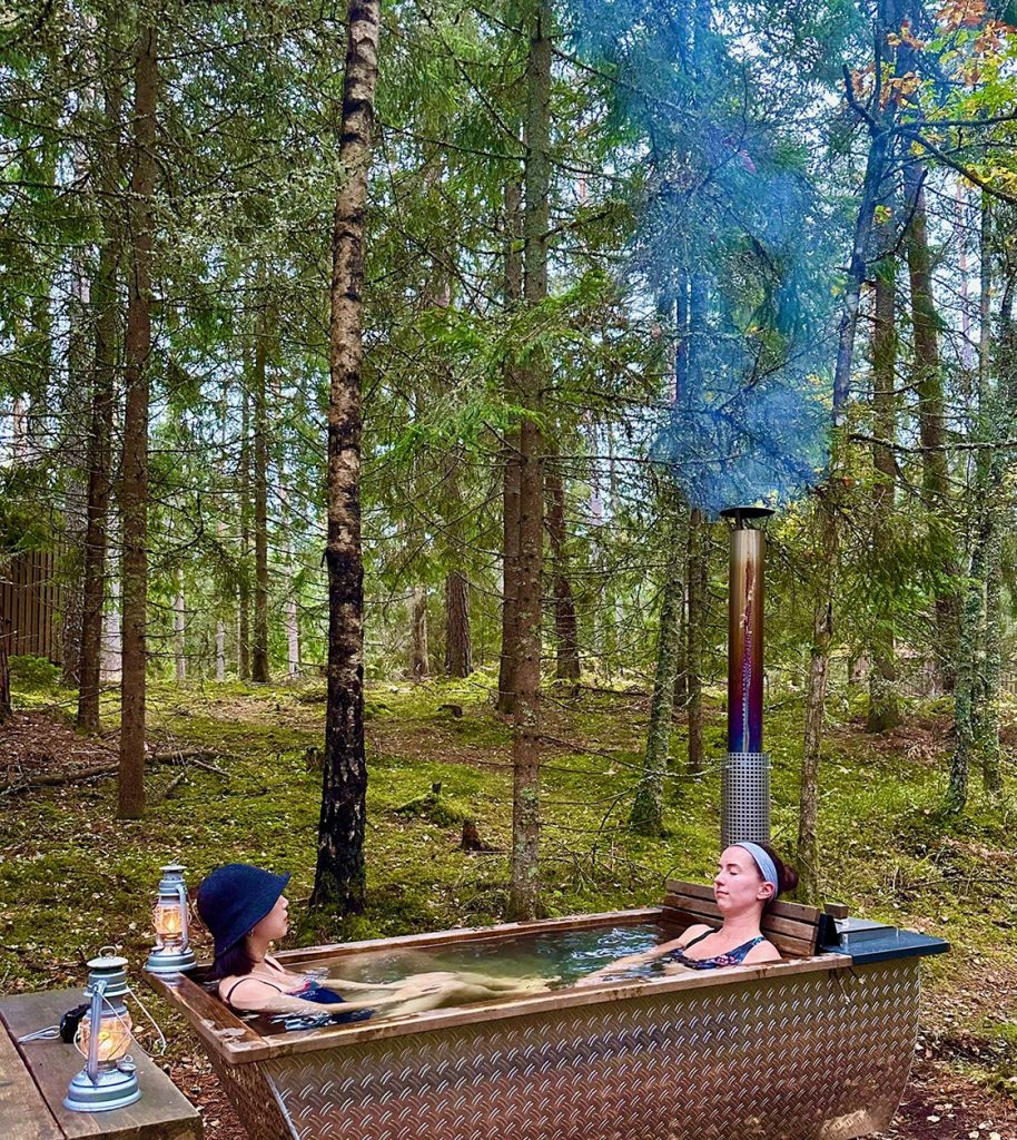 I Sverige kan læger udskrive recept på ophold i naturen som behandling for eksempelvis stress. Det er nemt at forstå, for mens vi ligger i blød i vildmarksbadet under de store grantræer, falder vores puls på dejligste vis, og de eneste lyde, der høres er fuglekvidren og de hurtige skridt fra et egern, der løber over grankoglerne.