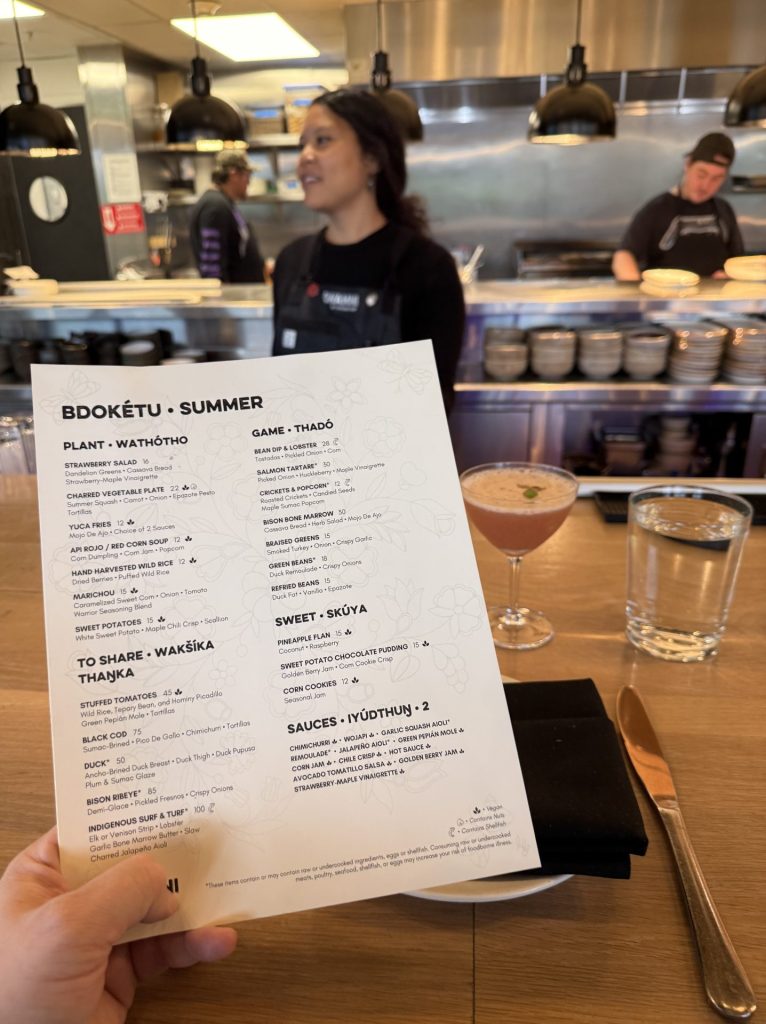 Der er godt fyldt op i restauranten, da jeg besøger restaurant Owamni i Minneapolis. Jeg sætter mig derfor ved baren og starter med en cocktail. Så langt, så godt.