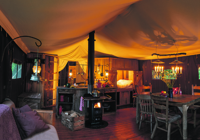 De luksuriøse telte er indrettet med soveværelse, køkken og eget bad og toilet. Maden tilberedes på gammeldags komfur, og dagene tilbringes udenfor på gården eller i den omkringliggende natur – fra Cornwalls kyster og hollandske vadehavsøer til Bretagnes landidyl og sydtyske Schwarzwald. Opholdene bookes som regel for minimum tre nætter, og priserne for et ophold starter på cirka 3300 kroner.