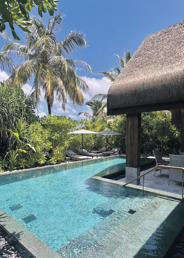 Villaerne på Joali Being er en fryd for øjet. De er kæmpestore, overdådigt indrettet og med et væld af lækre detaljer. Jeg har en privat pool og egen solterasse, men her er også foretaget et par interessante fravalg i indretningen.