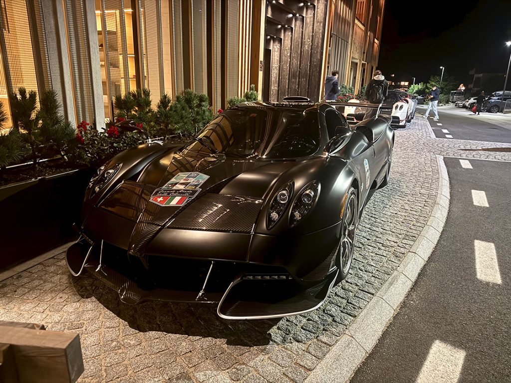 Ude foran hotellet er der også postyr, og det er endnu mere opsigtsvækkende. For samtidig med kvinden, ankommer også en karavane bestående af seks sportsvogne af den helt dyre slags: Tre Pagani og tre McLaren.