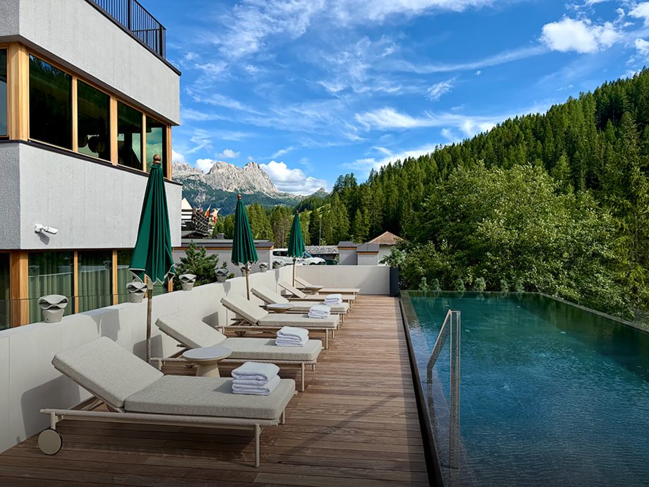 For det første har Aman en særlig kompromisløs tilgang til arkitektur. Når det hyggelige alpehotel nu er blevet bygget om, har det derfor fået den helt store tur, så formsproget i Dolomitterne passer til resten af kæden. Hvilket vil sige et enkelt, men luksuriøst udtryk. Tænk i retning af moderne linjer, dyre materialer, varme farver og naturligt lys. Det skal afspejle luksus, ro og velvære.