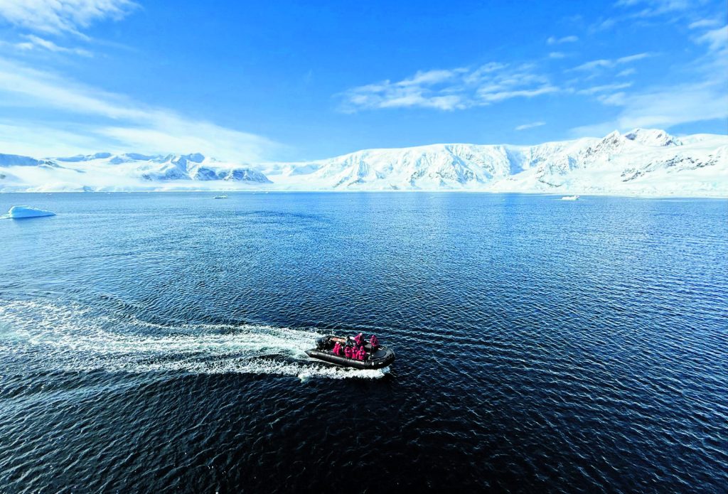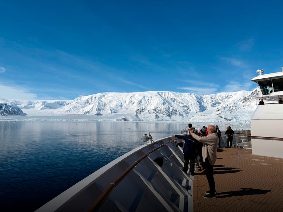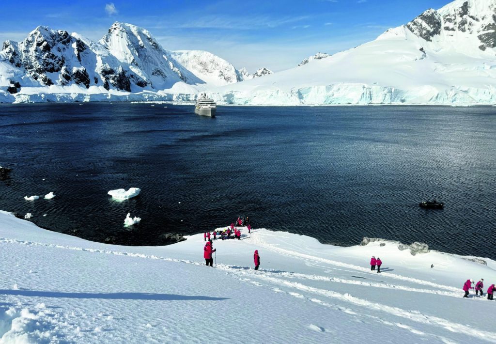 Kun de små ekspeditionsskibe må sætte folk i land på Antarktis. Store krydstogtskibe må gerne sejle rundt ved Antarktis, men det er uden landgang for skibets gæster.